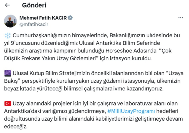 Bakan Kacır: Antarktika'da 'Yakın Uzay Gözlem İstasyonu' kuruldu